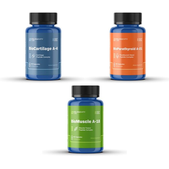 These three bioregulators work synergistically to enhance musculoskeletal recovery, repair connective tissues, and accelerate healing from injuries by targeting cartilage, bone, muscle, and soft tissue regeneration.